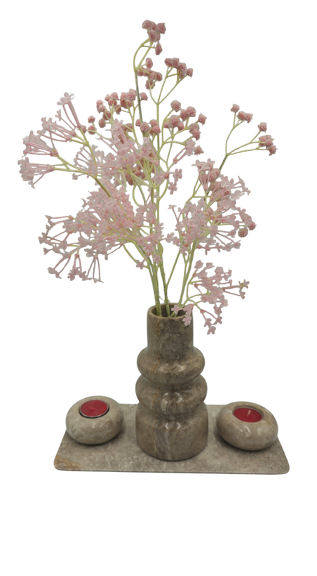 ست همتا با طراحی منحصربهفرد و کاربردی خود، ترکیبی از زیبایی و هنر را به فضای شما میآورد. این ست شامل یک گلدان شیک، یک جاشمعی ظریف و یک سینی زیر جاشمعی است که همگی از سنگ پرشین طوسی ساخته شدهاند. این متریال نهتنها دوام و مقاومت بالایی دارد، بلکه با ظاهر طبیعی و مدرن خود، به دکوراسیون شما جلوهای خاص میبخشد.